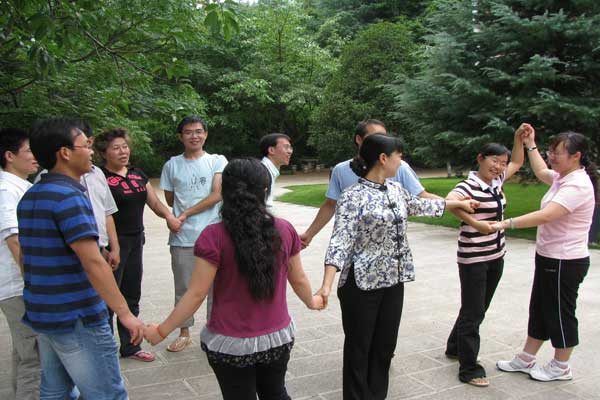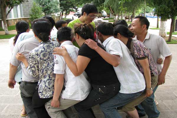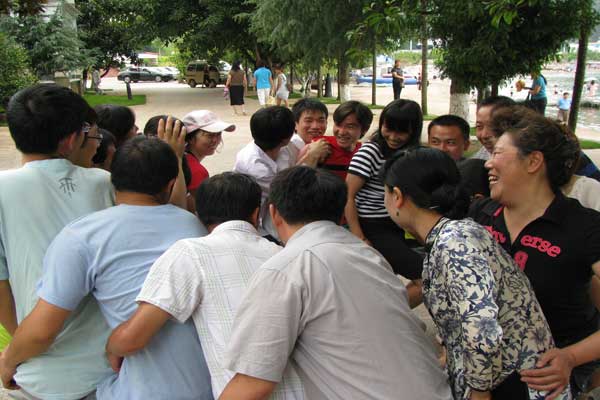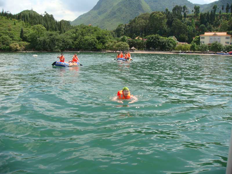 在清风送爽的抚仙湖畔,波光粼粼,迎着空气中弥散着阵阵醉人的花香,制品二室开始了丰富多彩的团队拓展活动——在水上游泳、皮划艇比赛,在沙滩上的“盲人拼绳”、“解手链”、“贴膏药”、“信任转圈坐”……