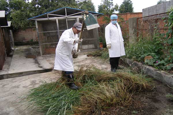 为庆祝建党88周年,进一步开展深入学习实践科学发展观活动,弘扬奉献精神,2009年7月21日,灵长类中心一支部全体党员开展了一次清理猕猴繁殖饲养区周边杂草的义务劳动。