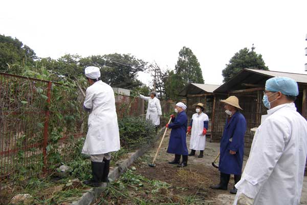 随着雨季的到来,我部猕猴饲养区周边原绿化带杂草丛生,不仅影响实验动物质量控制,还影响了环境。七月的昆明,天气闷热闷热的,但大家不顾炎炎烈日,以饱满的热情认真工作着,有的锄草、有的剪枝、有的推车清运。经过一个多小时的奋战,猴笼旁边的杂草、垃圾被清理出去,环境焕然一新。