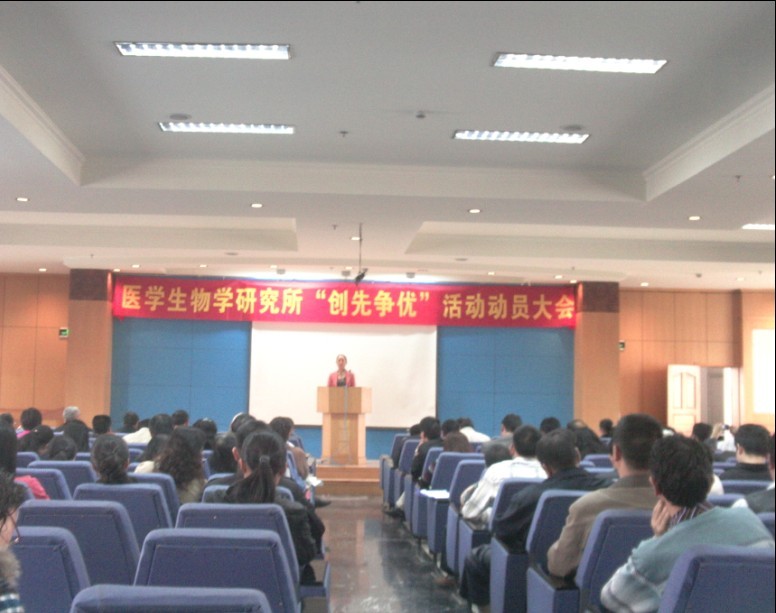 6月4日下午,所党委在科研楼九楼会议室召开了深入开展创先争优活动动员大会。全体党员参加了会议。党委副书记游丹同志在大会上做了讲话。她通报了医科院、卫生厅党组关于此次活动的相关进展,强调了此次活动的重要性和现实意义。指出开展创先争优活动是巩固和拓展学习实践活动成果的需要、是进一步推动我所各项事业科学发展的需要、是进一步加强基层单位党建工作的需要,要求基层党组织和广大党员要明确任务,把握好创先争优活动的总体要求和主要内容。基层党组织努力做到“五个好”;共产党员努力做到“五带头”。这次活动,我所要以“提高党员素质,加强基层组织,推动自主创新,创立诚信品牌、促进科学发展”为主题,通过公开承诺、领导点评、群众评议、评选表彰的方式有计划、有节奏地持续推进。