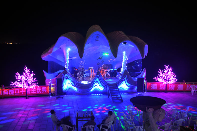 夜幕降临,岛上又是另一番景象,在霓虹灯的衬托下,小岛有了些闹市繁华的景象,喜好唱歌的朋友可以到舞台上一展歌喉,好好体验一把释放青春的快感!第二天一大早,我们在导游的带领下参观了岛上的几个景点,包括许愿树、野菠萝公园、维纳斯广场等,让我印象最深刻的要数野菠萝公园,这里塑了一个观音的雕像,观音的左右两边分别有两块貌似乌龟和金蟾的石头,观音送福,乌龟送寿,金蝉送禄,取其“福禄寿全”之意,多美好的祝愿呀!我也诚心的祈祷,希望这些祝福能福泽天下,造福世人!