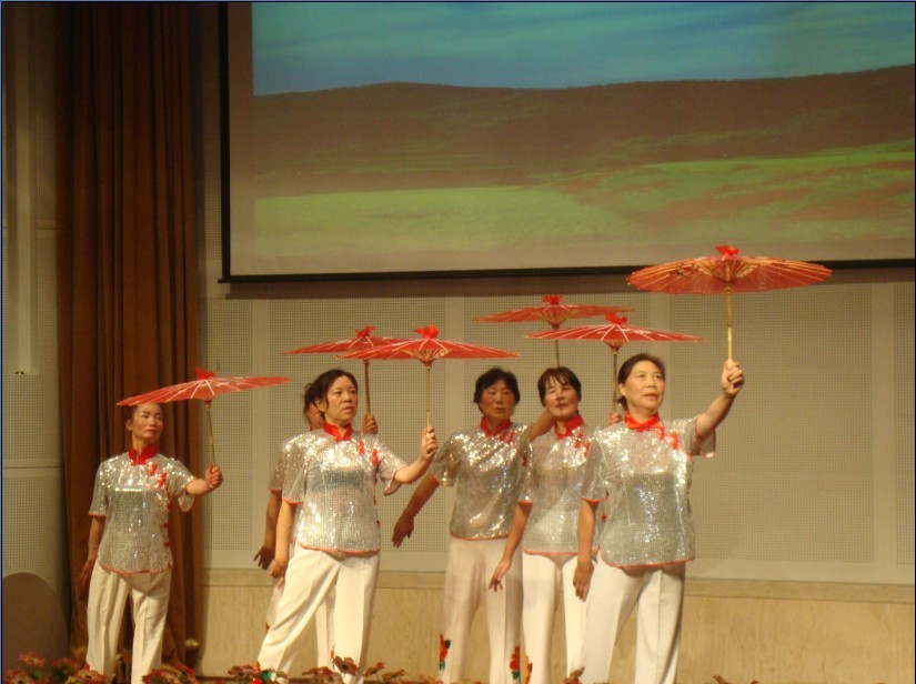 值得一提的是我们的老年舞蹈队。她们自编自演,从舞蹈的编排,伴奏选曲,到服装设计都是自编自创。一个多月来她们每天早上都从不同的住所来到生物所排练。在教练曹瑞琴,队长刘碧静的带领下,她们齐心合力,刻苦练习,一练就是一上午,不知出了多少力,流了多少汗。功夫不负有心人,在键身秧歌舞比赛中,她们以优美的舞姿,跳出了活力,跳出了魅力,跳出了健康,展现了老年人的高雅气质,用真情感动了评委和观众,迎得了阵阵热烈的掌声,荣获键身秧歌舞优秀奖。