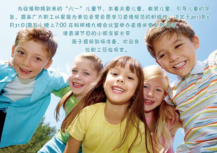 为庆祝“六一”儿童节,本着关爱儿童、教育儿童、引导儿童的宗旨,提高广大职工以家庭为单位自觉自愿学习道德规范的积极性。所党委联合团委工会于2013年5月31日(周五)晚上7:00,在科研楼九楼会议室举办了道德讲堂特别活动?;疃酝ㄖ⒊鲆岳矗玫搅怂兴谥肮さ娜攘蚁煊?,纷纷为自己的未成年子女报名参加活动。