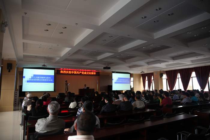 为纪念建党92周年,提升我所职工素质,加强党的建设,为深入开展党的群众路线教育活动奠定理论基础。作为弘扬“中国梦”系列活动的重要组成部分,所党委特别于建党节之际邀请云大任新民教授,于7月9日下午15:00,在九楼会议室,讲授党课《以十八大精神为指导,推进群众实践活动》。当天下午,全所党团员和入党积极分子安排好工作参加了本次活动,精彩的演讲还吸引了不少普通职工的积极参与。