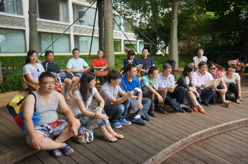 中午到达了澄江,午饭后还不能入住酒店,我们就在风景如画的室外,由学习委员郭晨组织大家学习。学习的内容是:1. 学习党办发文,领会上级关于党的群众路线教育实践活动的精神。2. 学习三本学习材料:《论群众路线——重要论述摘编》、《党的群众路线教育实践活动学习文件选编》、《厉行节约,反对浪费——重要论述摘编》,认真进行讨论。3. 要求大家回去进一步加强学习,安排9月底每人交一篇学习心得体会。