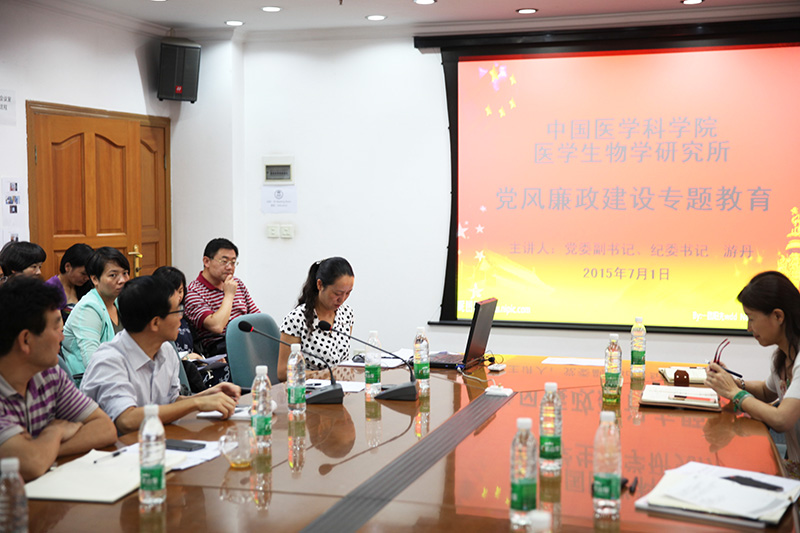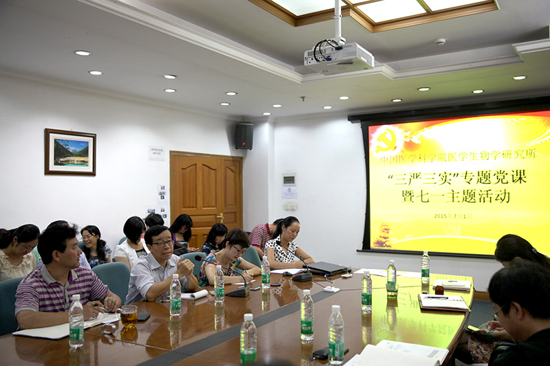 时值七一建党节来临之际,为庆祝中国共产党成立94周年,2015年7月1日,中国医学科学院医学生物学研究所开展了“三严三实”专题党课暨七一主题活动,所领导班子成员、党委委员、纪委委员、工会委员和全体中层干部参加。