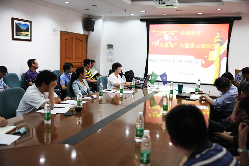根据《中共中国医学科学院医学生物学研究所委员会关于开展“三严三实”专题教育的实施方案》安排,生物所党委于2015年9月30日在科研楼三楼会议室举办了“严以修身”专题学习研讨会。所领导班子成员、党委委员、纪委委员、全体中层干部参加了本次会议。本次会议的主题是:严以修身,加强党性修养,坚定理想信念,把牢思想和行动的“总开关”。会议由谢忠平副所长作“严以修身”中心发言;随后孙茂盛、胡云章、史荔、吴俊同志分别进行了交流发言。