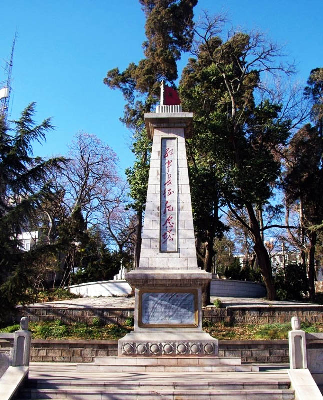红军长征纪念塔位于嵩明县城黄龙山南麓,嵩明一中校园内,距魁星阁约100米。建于1978年。系为纪念1935年和1936年中国工农红军长征两次路过嵩明的英雄壮举而建筑的。
