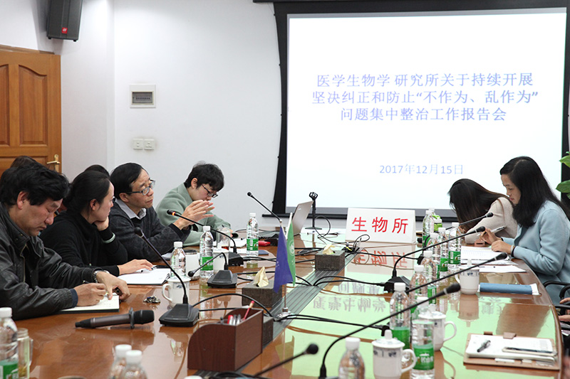 随后各部门针对《中国医学科学院医学生物学研究所关于持续开展坚决纠正和防止“不作为、乱作为”问题集中整治工作》一一进行了工作回顾及报告。各部门在管理创新、优化工作方法、思想觉悟、发展规划、监管、工作人员适应能力、工作积极性、服务意识、创新性等方面提出不足和改进意见。