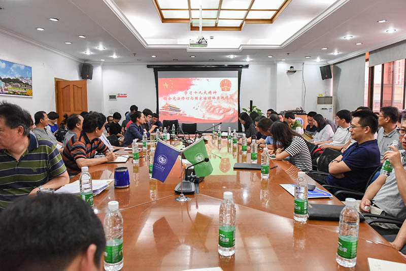会议首先由党委副书记兼纪委书记游丹同志带领大家学习十九大精神,领会宪法修订与国家治理体系现代化。游书记指出,2018年1月18日召开的党的十九届二中全会,审议通过了《中共中央关于修改宪法部分内容的建议》,在充分发扬民主、广泛凝聚共识的基础上,提出将习近平新时代中国特色社会主义思想载入宪法。这一重大决定,将党的指导思想上升到国家发展的指导思想,充分体现了新思想的历史意义。
