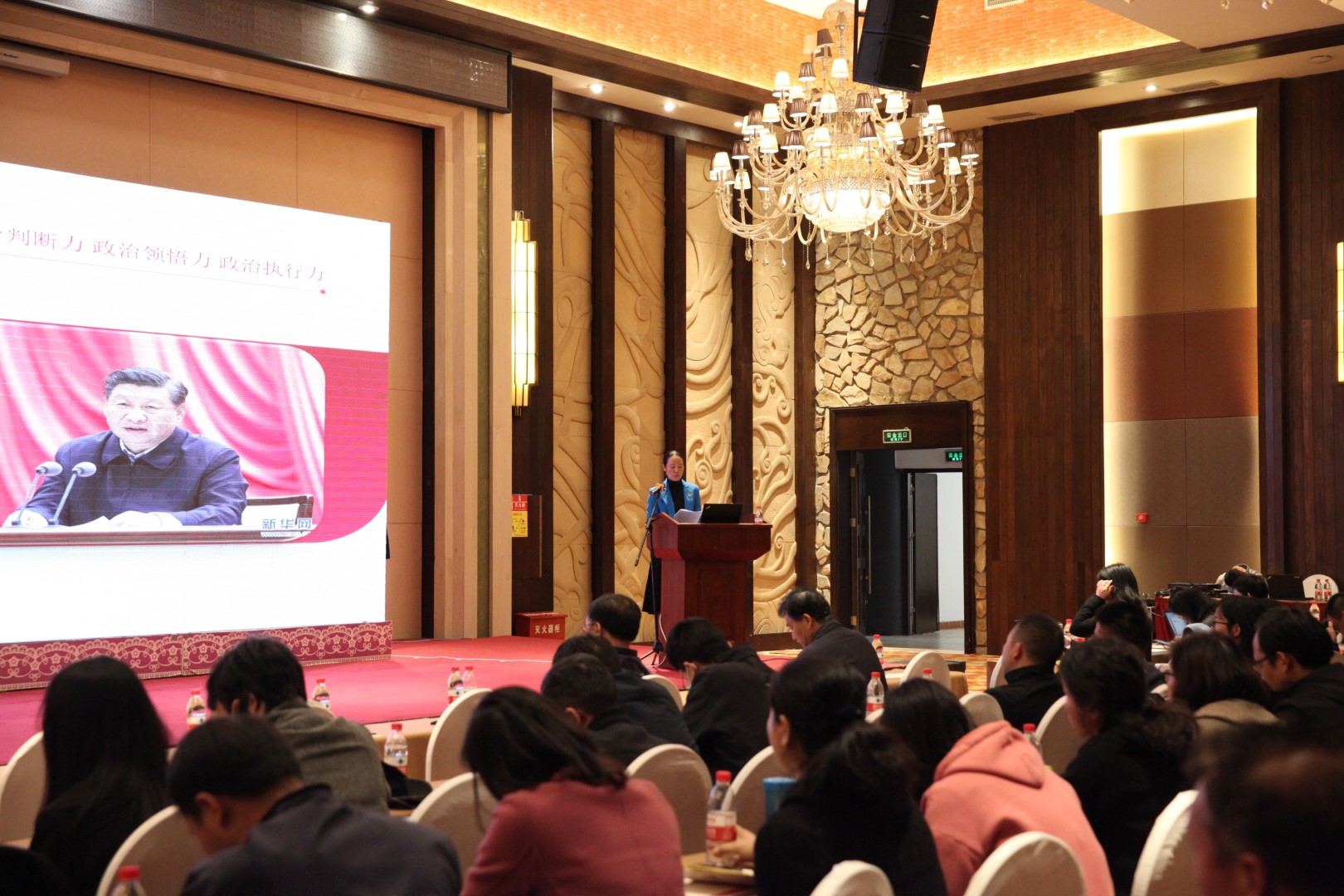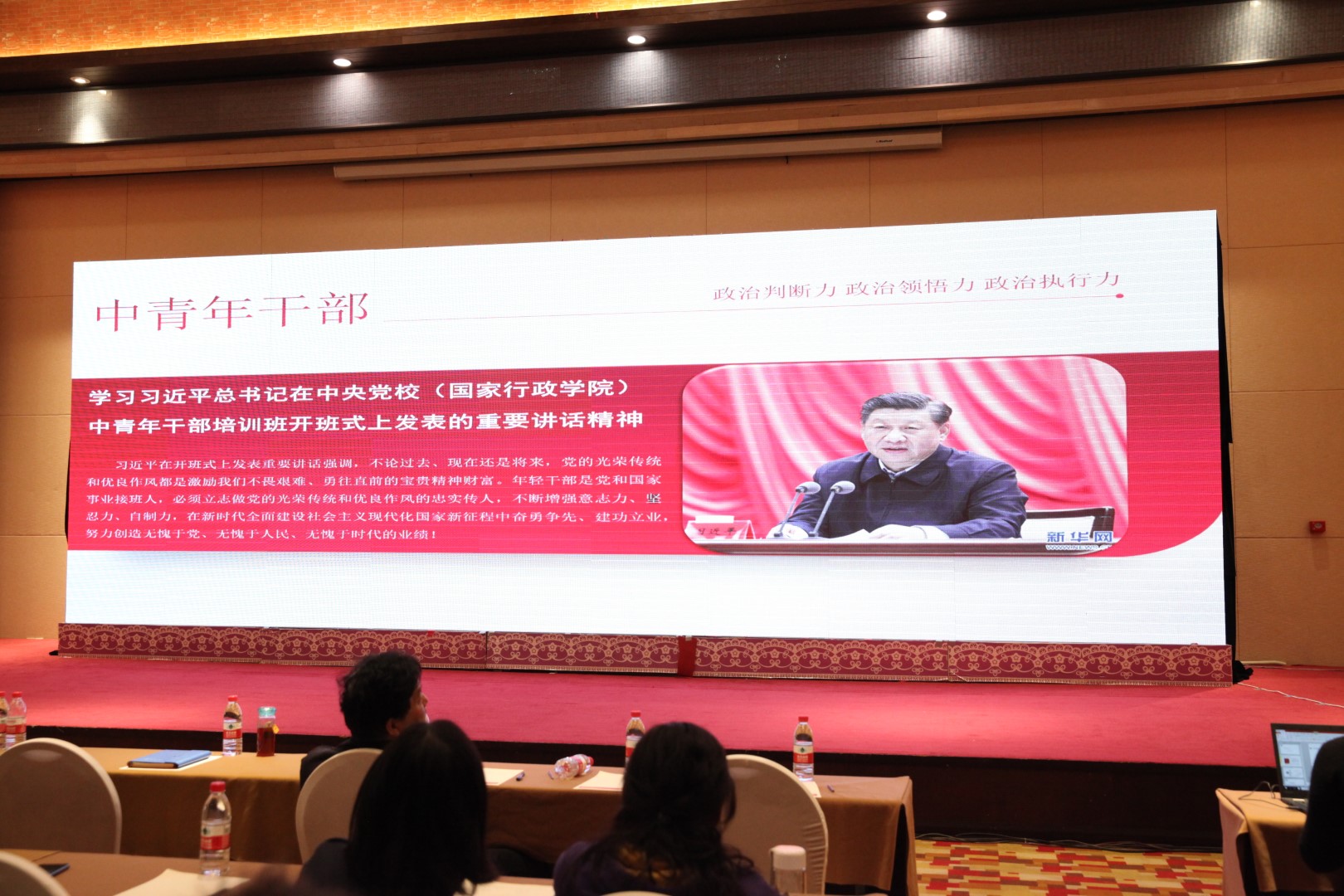 会议首先由党委书记游丹同志传达学习了习近平总书记在中央党校(国家行政学院)中青年干部培训班开班式上发表的重要讲话精神。
