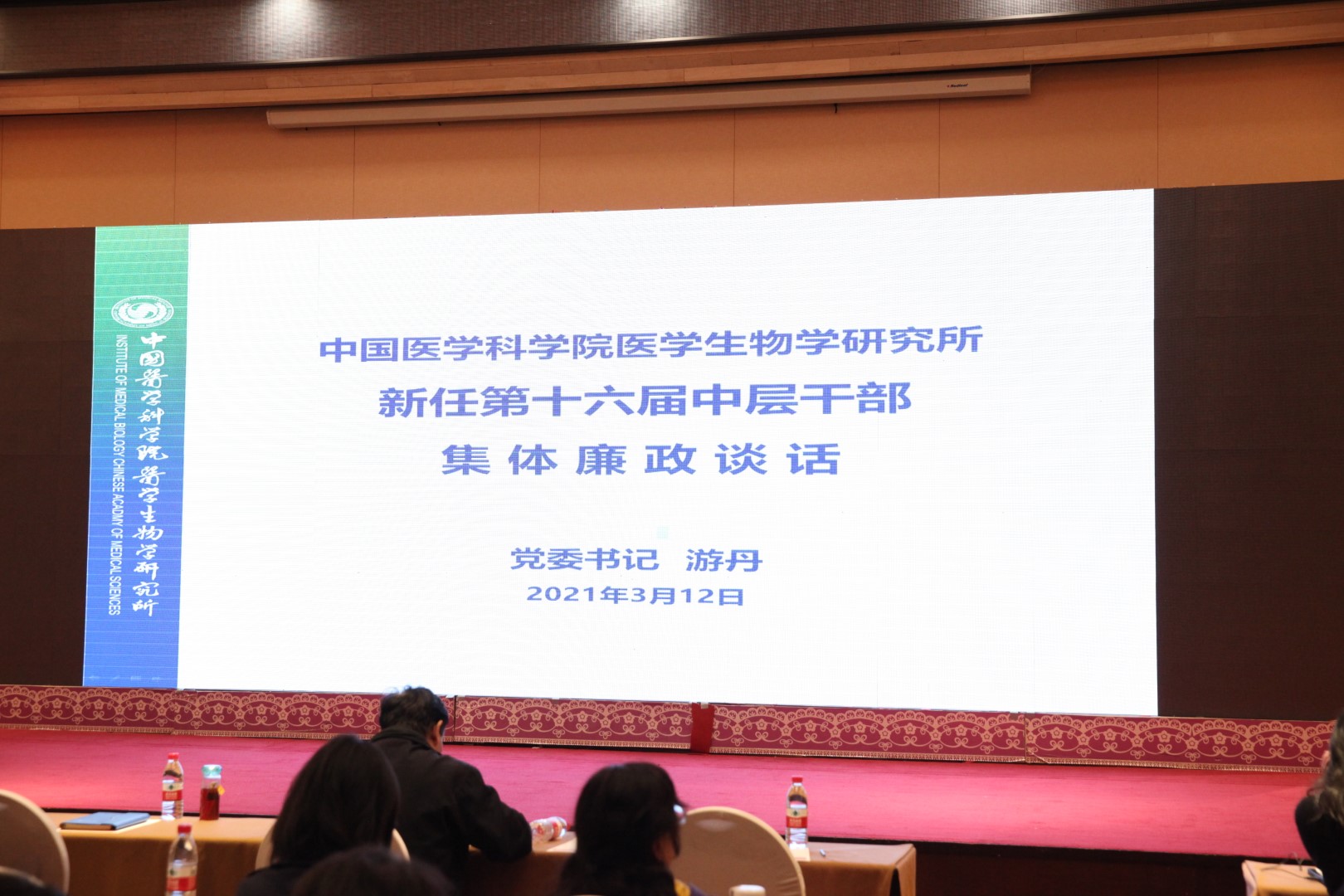 2021年3月12日,中国医学科学院医学生物学研究所召开展了干部培训与集体廉政谈话。