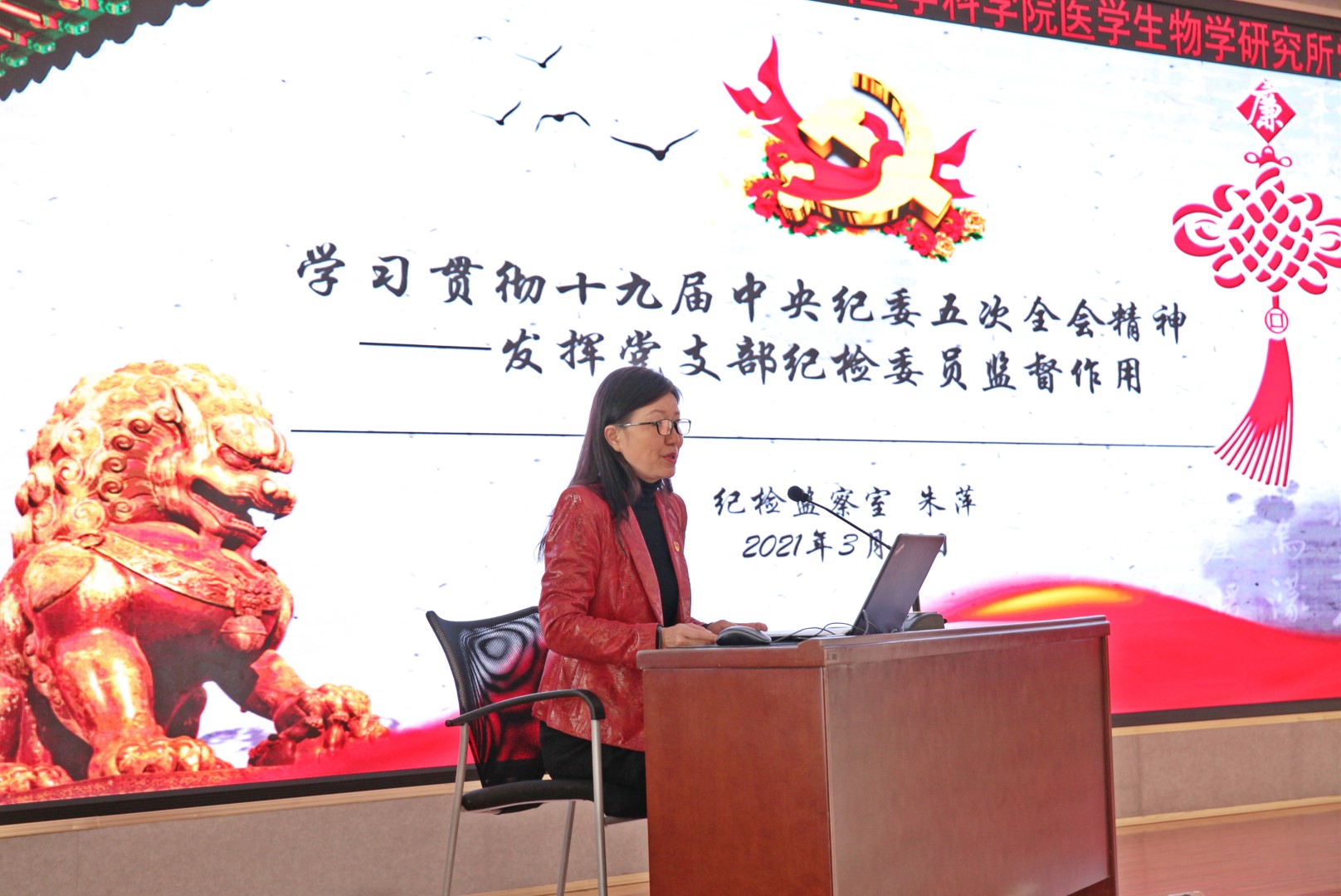 会议由纪检监察室朱萍同志传达学习了十九届中央纪委五次全会精神,对纪检委员的工作规范进行了解读,强调了党支部纪检委员的发挥监督作用的重要意义。