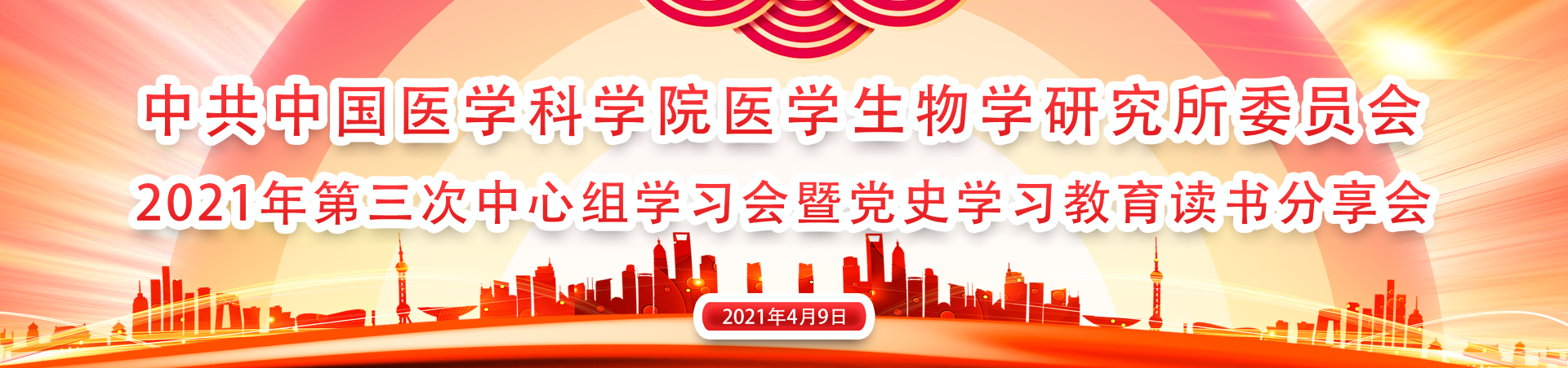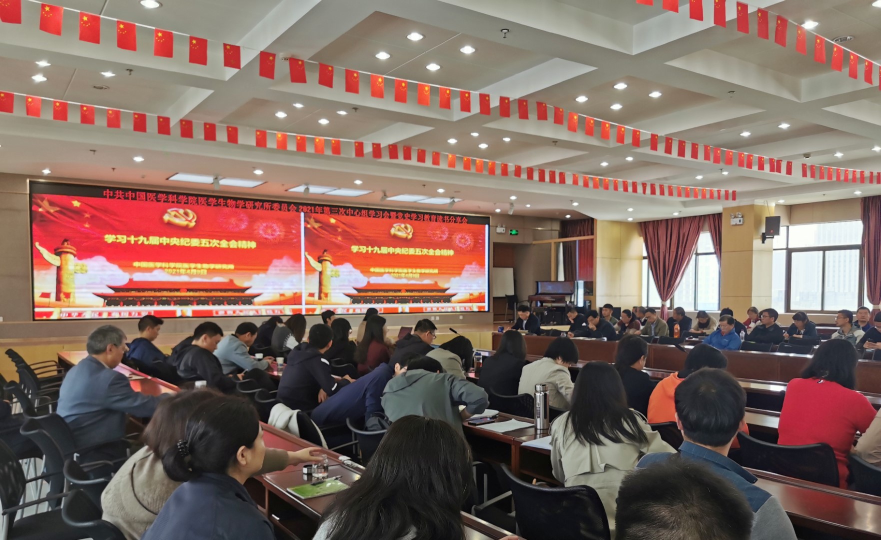 2021年4月9日,中共中国医学科学院医学生物学研究所委员会召开2021年第三次中心组学习会暨党史学习教育读书分享会。