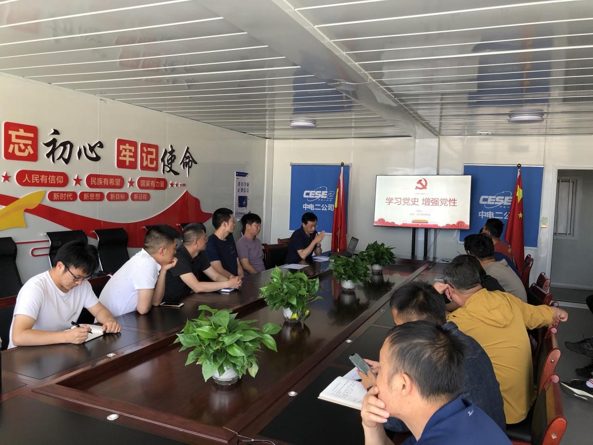2021年5月14日,设施系统全体党员、团员在马金铺创新疫苗研发及产业化集群项目建设基地聆听党支部书记樊海涛同志讲述党史。
