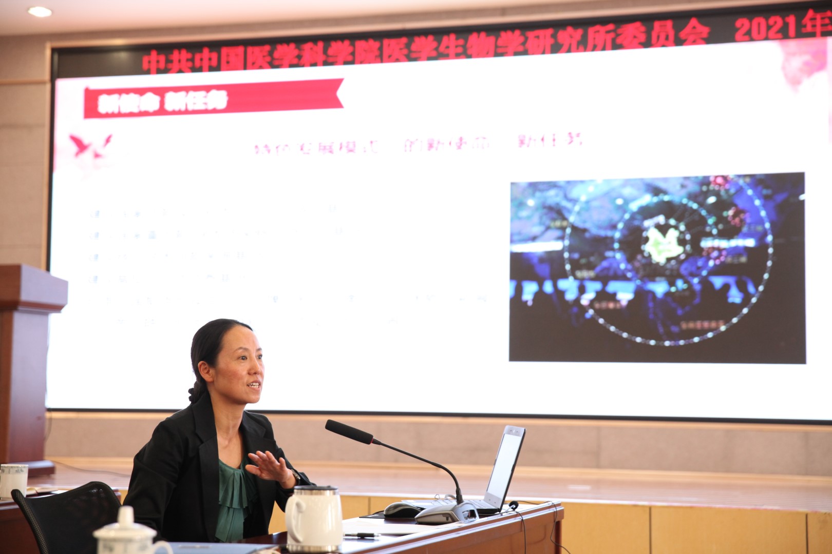 会议由党委书记游丹同志传达了习近平总书记在两院院士大会上的重要讲话,并分享了《作为管理者的思考》。她谈到,要承启院校文化,建设生物所成为魅力单位;要推动科研考核制度建立与改进,形成科技创新的强大合力;要落实习近平总书记对医科院的重要指示精神,努力推动建成中国医学科技创新体系的核心基地;要进行全链条整合,开启生物所“特色发展模式”;要把生物所建设成为国家创新疫苗研发及核心基地、国家重大新药/突发传染病应急反应基地,不断推进建设高层次人才培养基地,打造中国创造的疫苗品牌。