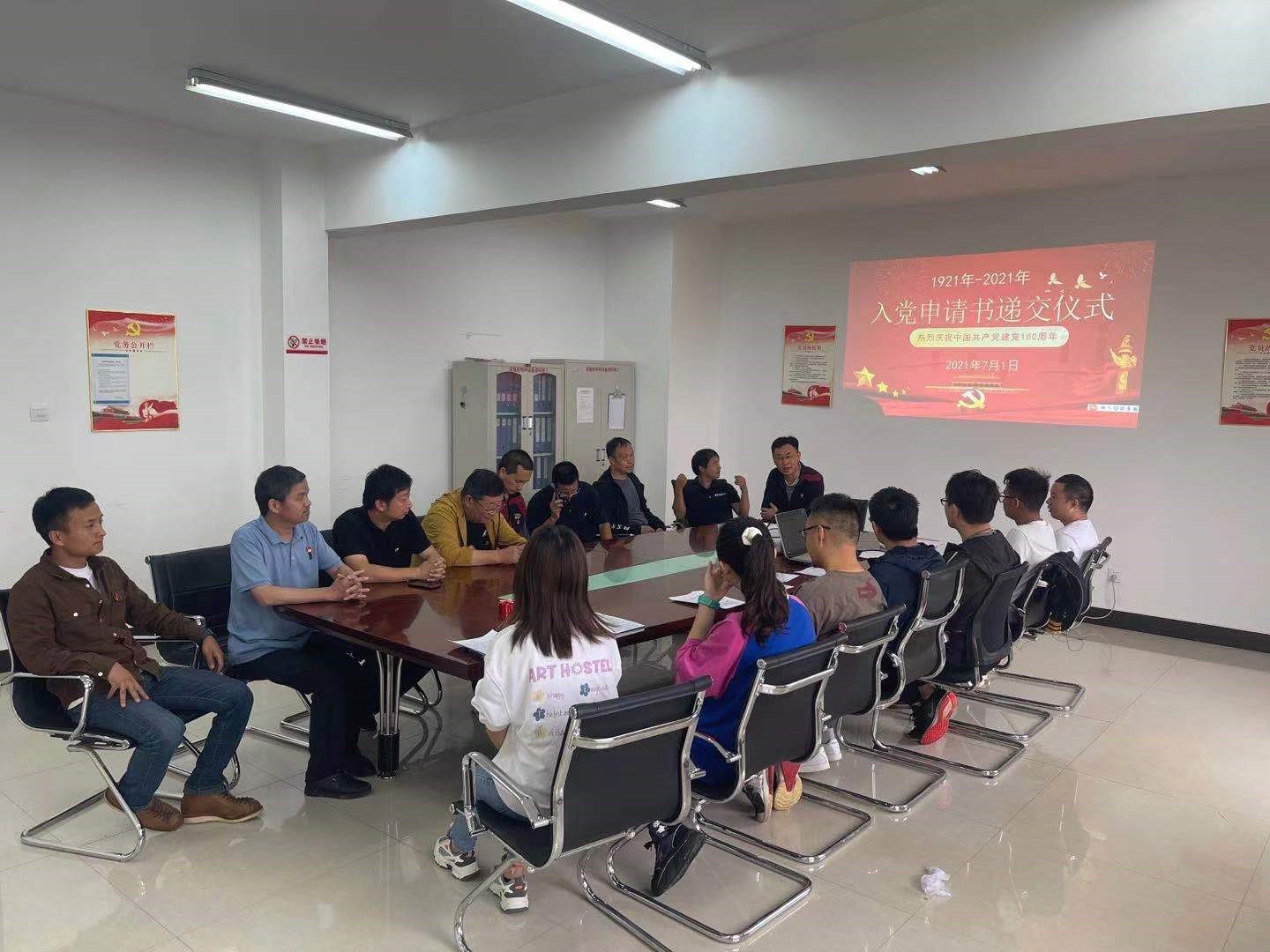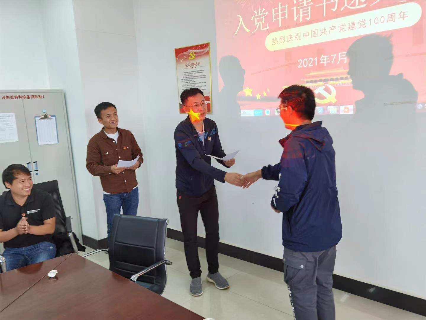 在中国共产党建党100周年纪念日到来之际,设施系统党支部7月1日在马金铺产业基地后勤楼4楼会议室为申请入党的同志举行了庄重的入党申请书递交仪式,并对递交入党申请书人员开展理论培训。