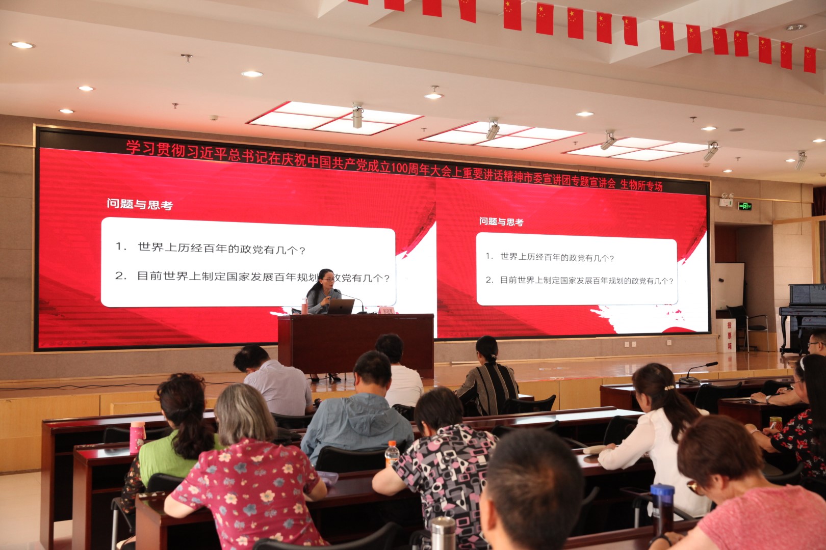 与会同志认真聆听,积极参与思考,跟随祁老师的思路不断探寻“七一”重要讲话中的精髓要义。大家表示,本次专题宣讲有内涵有深度,具有较强的针对性、实效性和可操作性,对于在全所范围内深入开展党史学习教育、全面把握习近平总书记在庆祝中国共产党成立100周年大会上的重要讲话精神具有重要的指导意义,对助力生物所在“十四五”期间行稳致远、坚持“四个面向”发展、奉献于人类健康事业迈上新高度具有推动作用。
