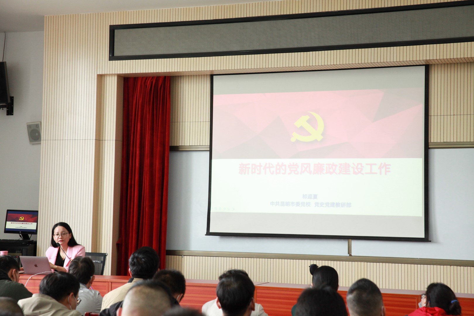 纪律教育基地参观结束后,全体人员参加了廉政党课教育,中共昆明市委党校党史党建教研部副教授祁迎夏同志以《新时代的党风廉政建设工作》为题呈现了一堂精彩的廉政党课。