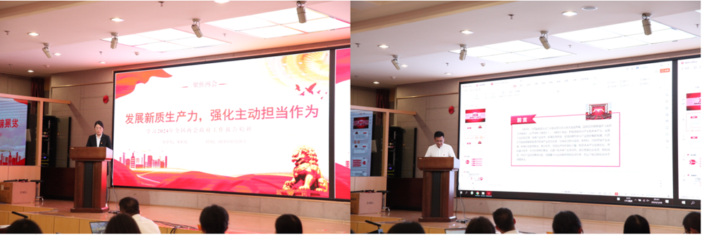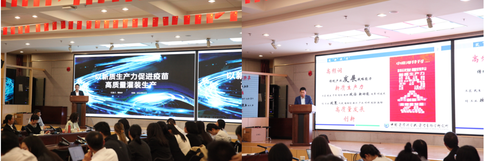 生物所党委书记游丹同志讲授了“以新质生产力推动高质量发展”的专题党课,游书记围绕《政府工作报告》中的15个“新”中关于高科技、高效能、高质量、新兴产业、新型能源等重要话题进行了详尽细致的讲述,解读这些“新”折射出的中国经济发展崭新趋向与强劲动能。结合生物所疫苗“赛道”传达了政府工作报告中的重点部署,整理了两会期间与疫苗有关的议题与讨论内容,从学习、实干、宣传三个方面,要求全体学员在学习过程中要把握精神实质,强化贯彻落实,加强组织实施。