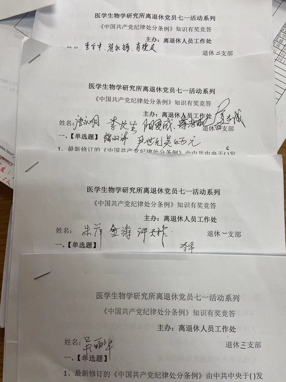 为强化党员纪律意识,所离退处结合新颁布执行的《中国共产党纪律处分条例》组织退休职工、党员进行了一场线上、线下相结合的知识有奖竞答活动。题目涵盖条例的各个方面,有奖答题的形式让党员、群众们更加深入地了解条例内容,做到知纪明纪、守纪用纪。