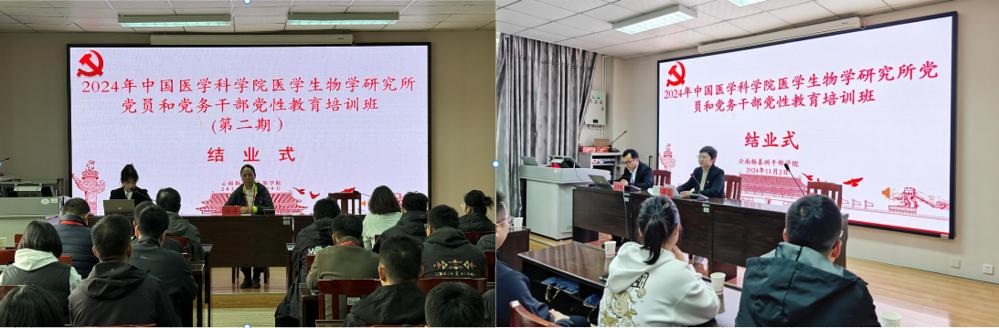 在授旗后,中国医学科学院医学生物学研究所(以下简称:生物所)带队领导游丹书记、吴俊副书记分别在两期培训开班式作开动员讲话,她们针对本次培训提出三点要求:一是要深入学习习近平新时代中国特色社会主义思想和二十届三中全会精神,深入领会党的精神实质和核心要义;二是要通过学习杨善洲精神,进一步坚定共产主义信仰;三是要尊崇党章党规党纪,严格遵守纪律和规定,保持良好的学习风气和形象;四是要注重实践锻炼和成果转化,发挥先锋模范作用,将杨善洲精神运用到实际工作中去,推动生物所的工作取得更大的进步。