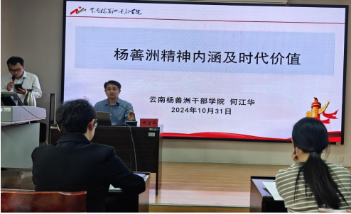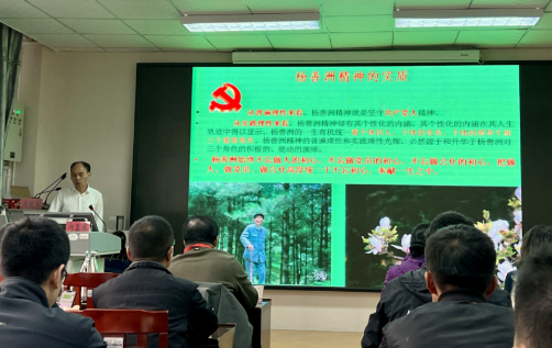 何江华老师深入解读了《杨善洲精神内涵及时代价值》,对学习“杨善洲坚定信念、对党忠诚的政治品格;牢记宗旨、一心为民的公仆情怀;鞠躬尽瘁、不懈奋斗的崇高境界;大公无私、淡泊名利的奉献精神”及不忘初心、奉献一生的精神等内容进行了解读,用“杨善洲精神”的榜样力量进行思想洗礼,将“杨善洲精神”转化为履职尽责、担当作为的生动实践。