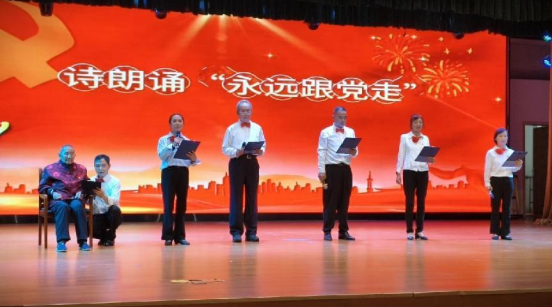 “党,是中华民族的领路人,是人民的引航灯。自诞生之日起,党始终矢志不渝地引领中国人民,历经风雨,走向光明。”在103岁高龄、拥有86年党龄的尹芳老前辈略显沙哑却饱含深情的领诵下,中国医学科学院医学生物学研究所(以下简称生物所)的离退休中共党员及民主党派人士眼中闪烁着对党的坚定信仰。他们在《永远跟党走》的朗诵中,深情诠释了对党的忠诚与热爱,由此拉开了庆祝中国共产党成立104周年活动的序幕。