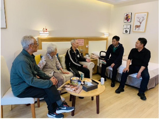 文艺汇演结束后,离退处携带精心准备的慰问品和诚挚的问候,冒雨带领银发志愿者深入各小区和敬老院,慰问在党50年、体弱多病的老党员及其他民主党派的老职工。他们每到一处,都与老党员们亲切座谈,认真倾听他们的心声与需求,详细介绍生物所发展建设方向。银发志愿者们用实际行动传递着党的关怀与温暖,让老党员们深切感受到组织的牵挂与爱护。