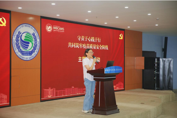 为深入贯彻落实习近平总书记关于作风建设的重要指示精神,进一步强化马金铺所区干部职工的责任担当意识,引导党员干部深刻认识疫苗质量工作的重要意义,提升疫苗质量意识,2025年6月27日,中国医学科学院医学生物学研究所(以下简称生物所)在马金铺所区举办“守责于心践于行,共同筑牢疫苗质量安全防线”联合主题党日活动?;疃芍柿肯低车持Р俊⑸低车谝坏持Р?、生产系统第二党支部、生产系统第三党支部及设施系统党支部联合开展。通过专题学习、分享交流、实践承诺等环节,旨在推动党员干部将责任意识内化于心、外化于行,切实肩负起疫苗质量安全的政治责任和使命担当。马金铺所区全体党员及工序长以上人员参加了本次主题党日活动,活动由质量系统党支部副书记蔡秋龙主持。