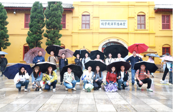 支部党员集合后首先参观了云南省陆军讲武堂。这是中国近代史上著名的军事院校,始建于1909年。漫步在陆军讲武堂的黄墙黑瓦间,厚重的历史感扑面而来。这座曾经的“革命熔炉”,一桌一椅、一景一物,无不诉说着波澜壮阔的往昔。朱德、叶剑英等一代将帅从这里走出去,成为民族独立与解放的中流砥柱。讲武堂不仅是一座革命建筑,更是一种“坚韧刻苦”精神的象征。