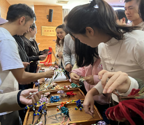 研讨结束后,“绒花传情 匠心践初心”非遗体验活动如期开展,党员们体验制作非遗绒花,指尖翻飞间感受传统工艺的独特魅力,通过体验活动,增强文化自信与创新传承意识,实现 “非遗传承”与“思想教育”的双向赋能,推动文化建设与支部党建协同发展。