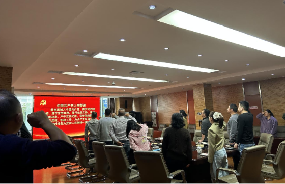 党支部副书记纳锐雄同志的带领全体党员面向党旗重温入党誓词,进一步坚定了党员们的理想信念与使命担当。