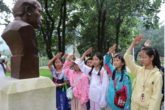 同学们在顾方舟铜像前排列整齐,以少先队员最高的礼节向顾方舟爷爷致敬,表达广大青少年学生对伟大科学家的深深敬意,传承顾方舟爷爷“为一事来鞠躬尽瘁,做一事去泽被子孙”的大无畏精神。