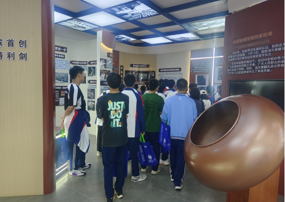 在充满历史感的生物所所史展览馆中,学生们追溯着生物所从筚路蓝缕到硕果盈枝的宏伟历程。一份份泛黄的原始手稿、一件件饱经沧桑、简陋的实验器具、一块块闪闪发光的创新奖牌,无声述说着科研工作者为守护人民健康付出的坚忍岁月。