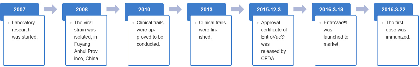 After 8 years’ dedicated work, EntroVac?, the first vaccine against HFMD caused by Enterovirus Type (EV-71) was approved by CFDA on December 3nd, 2015.