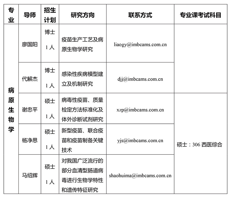 (五)病原生物学(博士、硕士点):围绕病毒疫苗与分子病毒学,开展病毒性疫苗与纳米佐剂疫苗技术的研发工作。包括减毒株脊髓灰质炎灭活疫苗、发酵罐乙脑灭活疫苗、脊髓灰质炎四联疫苗等。