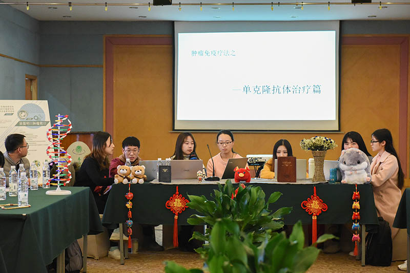 负责主持本场学术沙龙活动的第四小组成员李志远首先提出问题:通过对肿瘤等于癌症么?常见的癌症有哪些?肿瘤的发生与哪些因素会有关? 癌症治疗手段有哪些等问题引导同学们讨论区分肿瘤与癌症概念的区别,了解了肿瘤的发生发展以及治疗手段的发展历程和现状。从而引出了现代肿瘤免疫疗法的明星热点单克隆抗体疗法、CAR-T疗法、检查点疗法以及肿瘤疫苗。