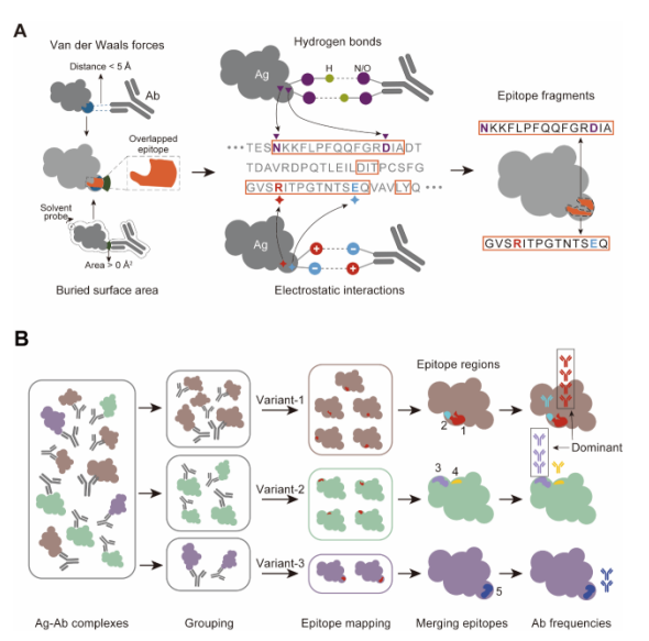 免疫优势?(Immunodominance)是指针对同一免疫原,免疫系统仅识别其中少数几个表位并产生免疫应答的现象。识别抗原B细胞优势表位区域,特别是针对中和抗体的表位,对于改进疫苗设计以及理解病原体免疫逃逸机制至关重要。传统的优势表位鉴定方法主要依赖多种免疫学实验,这些方法不仅耗时耗力,而且无法提供针对中和抗体的精确表位信息。蛋白质数据库(Protein Data Bank, PDB)中储存了大量抗原-中和抗体(Ag-nAb)复合物的晶体结构,这为我们利用生物信息学工具识别抗原B细胞优势表位区域提供了可靠的数据来源。然而,目前尚无专门工具能够从这些Ag-nAb复合物晶体结构中揭示这一关键的表位信息。