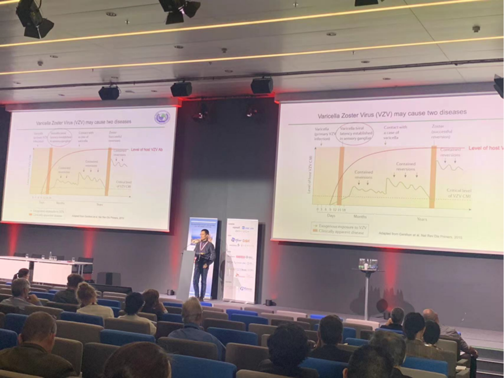 我所刘存宝研究员获邀参加于2023年10月22日至24日在瑞士科技会议中心举办的国际疫苗学会2023年度大会(2023 International Society for Vaccines Annual Congress),并以“LNP-CpG ODN-adjuvanted varicella-zoster virus glycoprotein E induced comparable levels of immunity with ShingrixTM in VZV-primed mice”为题,就其作为PI团队的带状疱疹亚单位疫苗研发工作,同时以会议口头报告(oral presentation)和海报(poster)的形式进行了介绍。