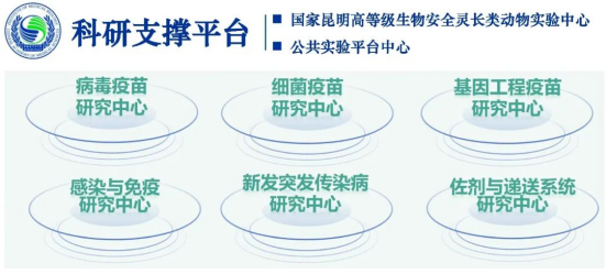 生物所对标国内外顶尖科研机构,集中整合研究力量,全力聚焦研究方向,以创新疫苗研发为导向,依托国家昆明高等级生物安全灵长类动物实验中心及所内公共实验平台中心,构建了病毒疫苗、细菌疫苗、基因工程疫苗、感染与免疫、新发突发传染病和佐剂与递送系统的“六大研究中心”,搭建了创新疫苗研发平台与疫苗辅助技术平台。