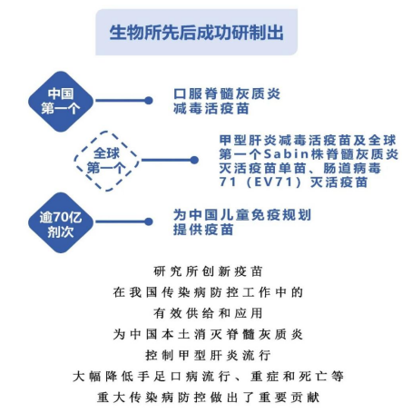 生物所以国家公共卫生事业的战略发展需求为己任,在我国医学科技创新体系核心基地的建设中,以创新疫苗和传统疫苗更新换代的研发为核心,突破疫苗基础研究、工艺开发和生产的关键技术瓶颈,不断优化产业结构,提高产业发展水平,为我国重要传染病的防控贡献力量。