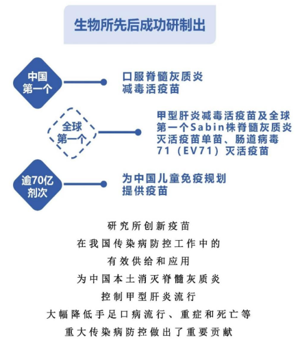 生物所以国家公共卫生事业的战略发展需求为己任,在我国医学科技创新体系核心基地的建设中,以创新疫苗和传统疫苗更新换代的研发为核心,突破疫苗基础研究、工艺开发和生产的关键技术瓶颈,不断优化产业结构,提高产业发展水平,为我国重要传染病的防控贡献力量。
