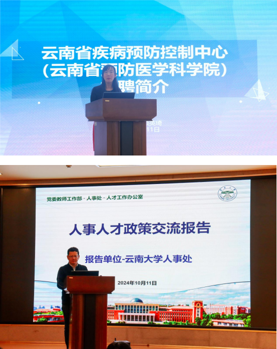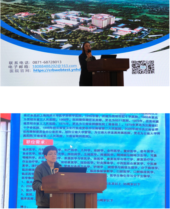 上午,云南省阜外心血管病医院、云南省传染病医院、云南大学附属医院、云南省疾病预防控制中心、云南大学(排名不分先后,以分享顺序为准)相继进行校园招聘宣讲。5家单位分别从单位概况、人才队伍、招聘情况(包含招聘政策、福利待遇、工作环境、单位文化及发展规划等)方面进行详细介绍,诚意招募优秀学子。宣讲会上各家单位提供现场答疑,会后耐心与学生进行互动交流。此外,各单位提供了线下联系渠道,为生物所研究生就业工作提供较大帮助和有力支持。