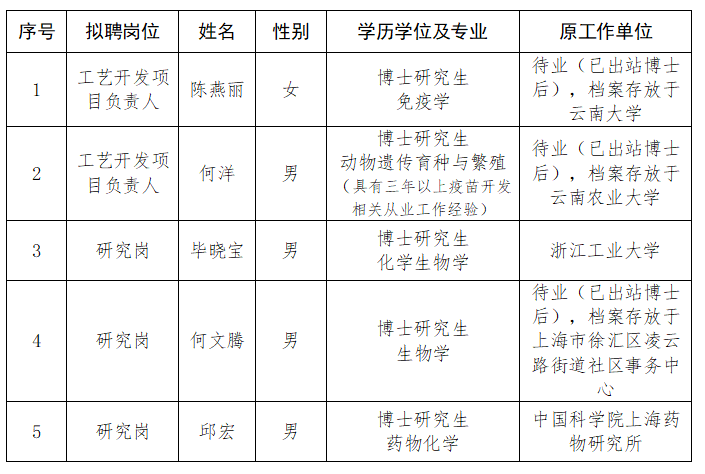 中国医学科学院医学生物学研究所 2025年度社会公开招聘 拟聘用人员公示