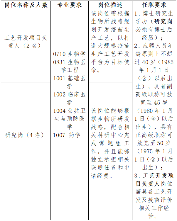 中国医学科学院医学生物学研究所2025年公开招聘公告