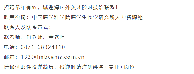 中国医学科学院医学生物学研究所2025全球人才招聘