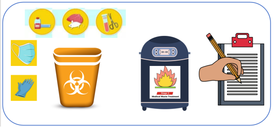 敲黑板:实验室活动过程中产生的感染性废物,应经高压蒸汽灭菌或化学消毒处理,并做好记录。