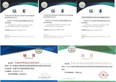 安评中心自2019开始,定期参加了由中国食品药品检定研究院组织、实施的临床指标检测验证,均获得“满意”结果,标志着安评中心临床指标检测能力获得专业权威机构的认可,检验检测平台检测水平持续稳定、精准可靠。
