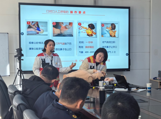 培训老师进行了生动的现场授课,详细介绍了心脏骤停的概念以及在黄金急救4分钟内使用除颤仪的必要性,并对操作动作规范性方面进行了深入讲解。